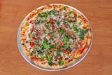 Pasta tossed with seasonal vegetables in our signature garlic sauce.